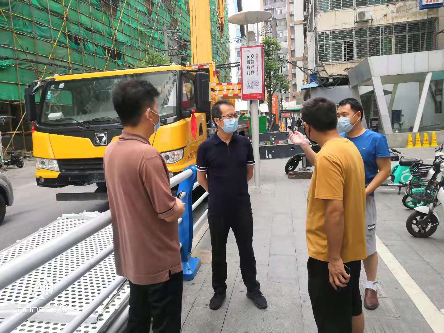 首先在中商外立面改造施工現(xiàn)場,聽取中鴻裝飾公司的施工進度工作匯報后,陳施俊同志要求,在圍繞按期完成施工任務(wù)的同時,要加強員工疫情防控知識宣傳教育,提高員工個人防護意識,督促員工做好健康監(jiān)測。對施工場地、辦公場所、員工集中住宿區(qū)和食堂等重點場所要開展常態(tài)性衛(wèi)生大掃除和消殺。